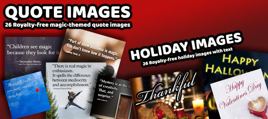 Image Pack 1: 26 Quotes posted on beautiful royalty free backgrounds. Quotes are themed on magic, mystery, illusion, etc.